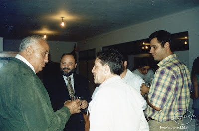 S. Carlos (concelho de Angra do Heroísmo) 1996. Provas de queijos e de vinhos promovidas pela delegação dos Açores da Associação Portuguesa de Jovens Enófilos. Na foto: J. Flores, Miguel Amorim, Ricardo Jorge Mendes da Rosa e Jorge Belerique.